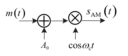 设m(t)=Amcosωmt,载波c(t)=cosωct,则