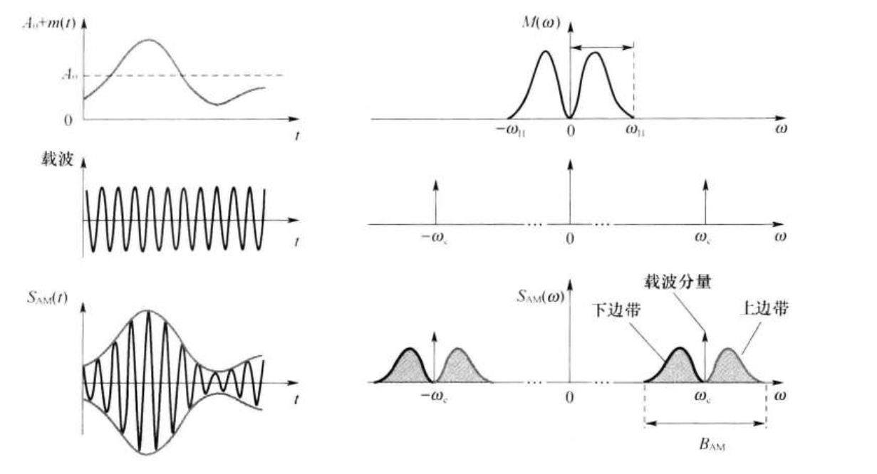 AM的频谱由载频分量,上边带和下边带组成