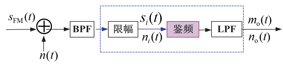 分析方法和线性调制系统相似,解调器变为鉴频器,如图