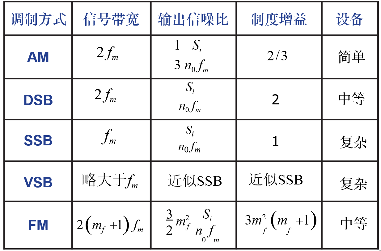 抗噪声性能:FM最好,DSB/SSB、VSB次之,AM最差