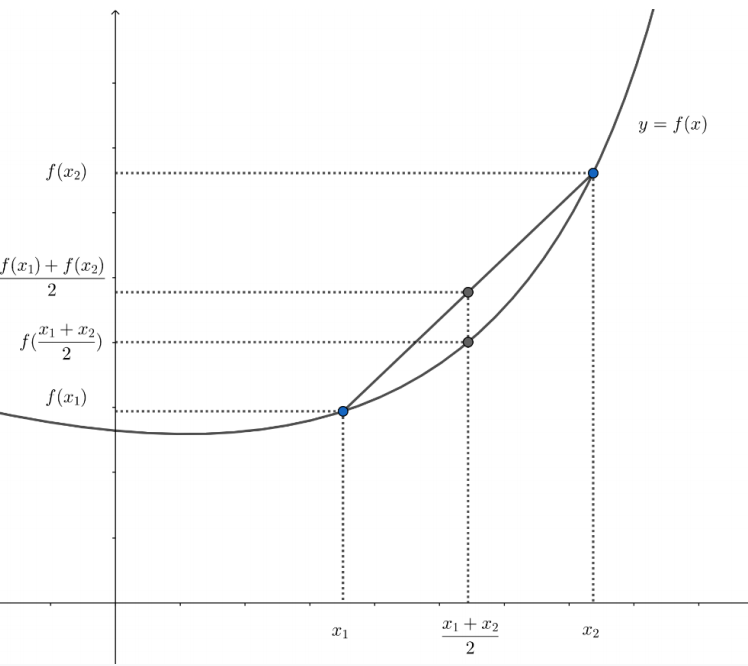 凸函数:若函数 f(x) 在区间 (a,b) 上是凸的,即对于 x1,x2∈(a,b) 且 0≤λ≤1,有: